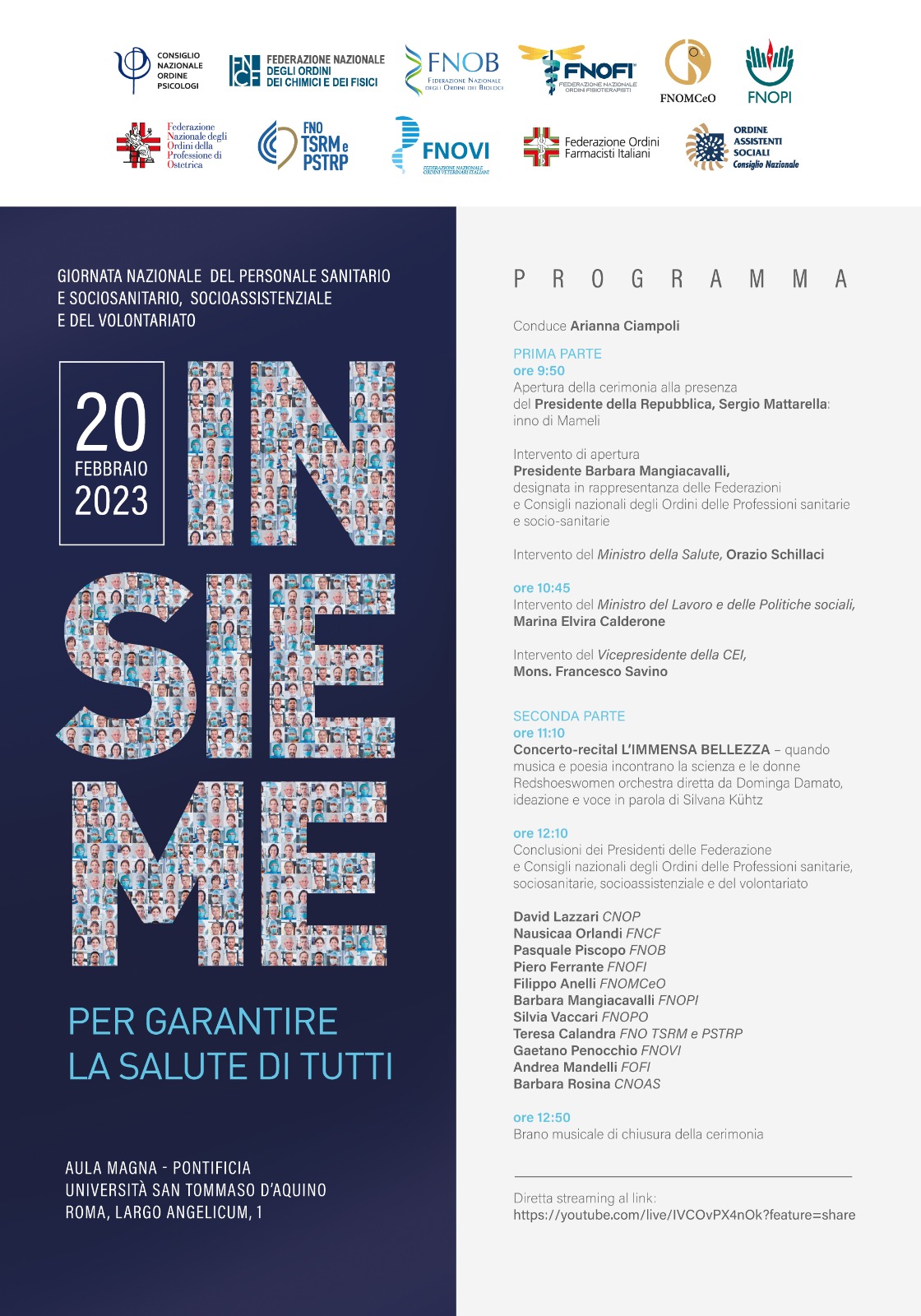 20 febbraio Giornata nazionale del personale sanitario, sociosanitario, socioassistenziale e del volontariato