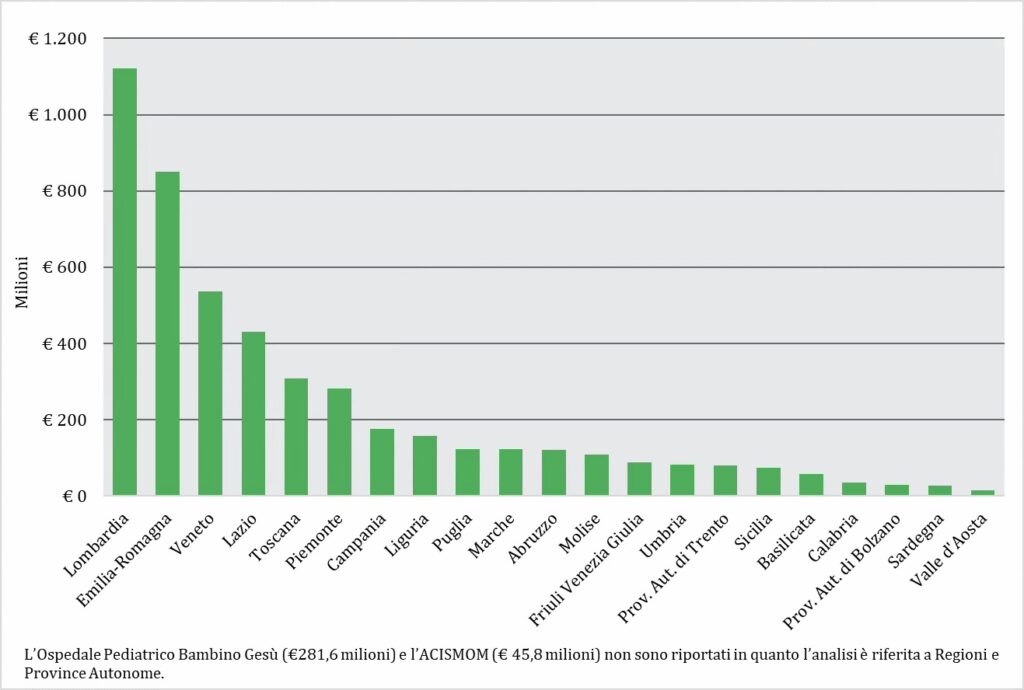 - Saldo positivo moderato: Toscana (€ 47,2 milioni)